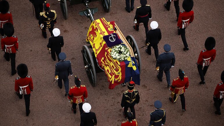Queen Elizabeth's coffin, covered by the Royal Standard flag and with the Imperial State Crown placed on a cushion on top alongside a wreath of flowers, is now lying in state in London's Westminster hall as thousands line up in the UK capital to pay their respects to the late monarch. For 23 hours per day, visitors will be able to pay their respects. Tickets will be issued to VIPs for designated time slots. The government has warned that people could face 30-hour waits to pay tribute to the Queen, the BBC reported.